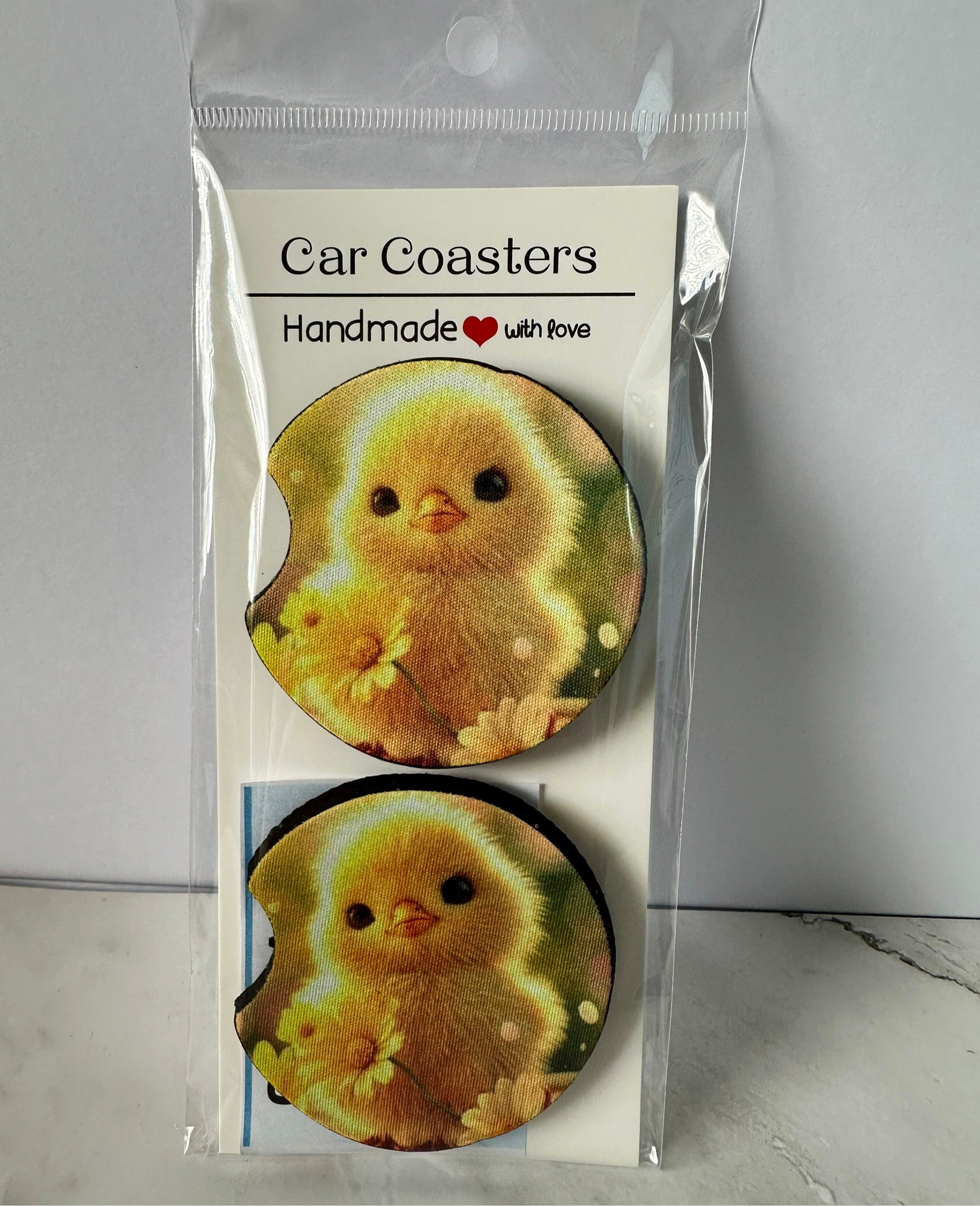 Set of 2 sublimated car coasters. Let this soak up your condensation